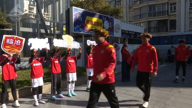 临沧队队员才刚下车,便有昆明小小足球爱好者夹道相迎,孩子们献上花环,以最纯真的笑脸和欢呼,向远道而来的球员表达了美好祝愿。